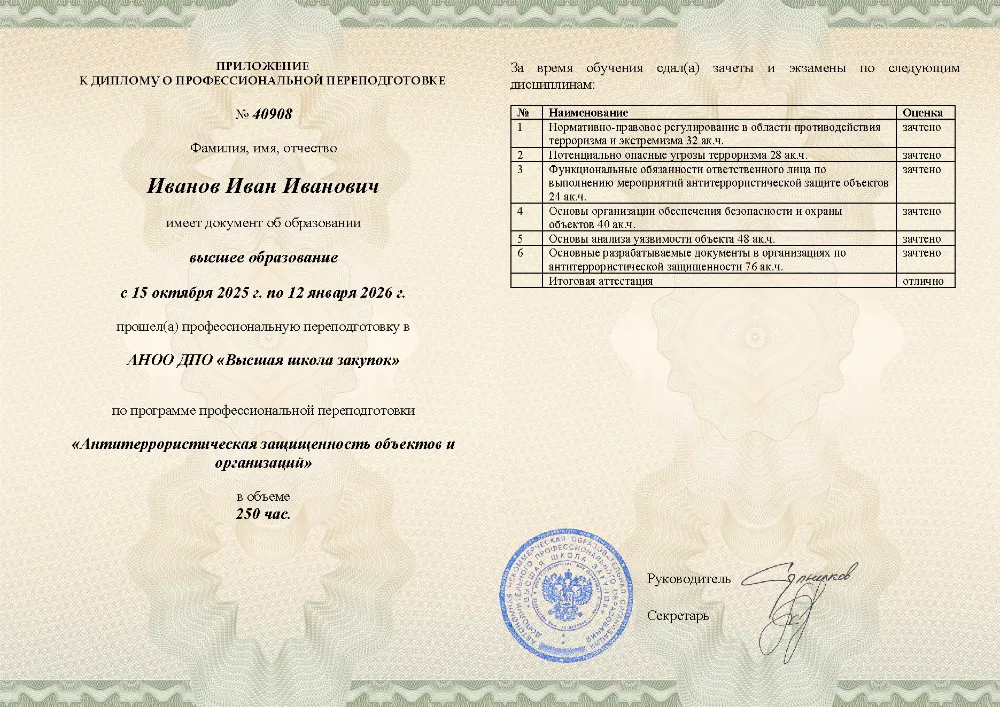 Это полноценная образовательная программа для получения дополнительной квалификации и освоения новой профессии. Для поступления также требуется высшее или среднее профессиональное образование (СПО). Итоговым документом является полноценный диплом о профессиональной переподготовке, который ценится на рынке труда. Программы являются наиболее объемными и начинаются от 250 академических часов, что обеспечивает глубокое погружение в специальность.