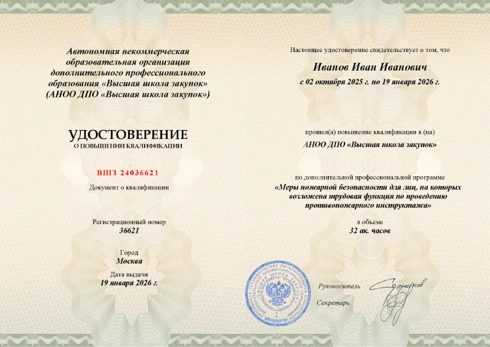 Повышение квалификации, 32 академических часа, 3 модуля: нормативно-правовые основы и обязанности инструктора, содержание и методика проведения противопожарных инструктажей, практические знания и навыки для эффективного обучения персонала. Онлайн-обучение в в Томске с итоговой аттестацией.