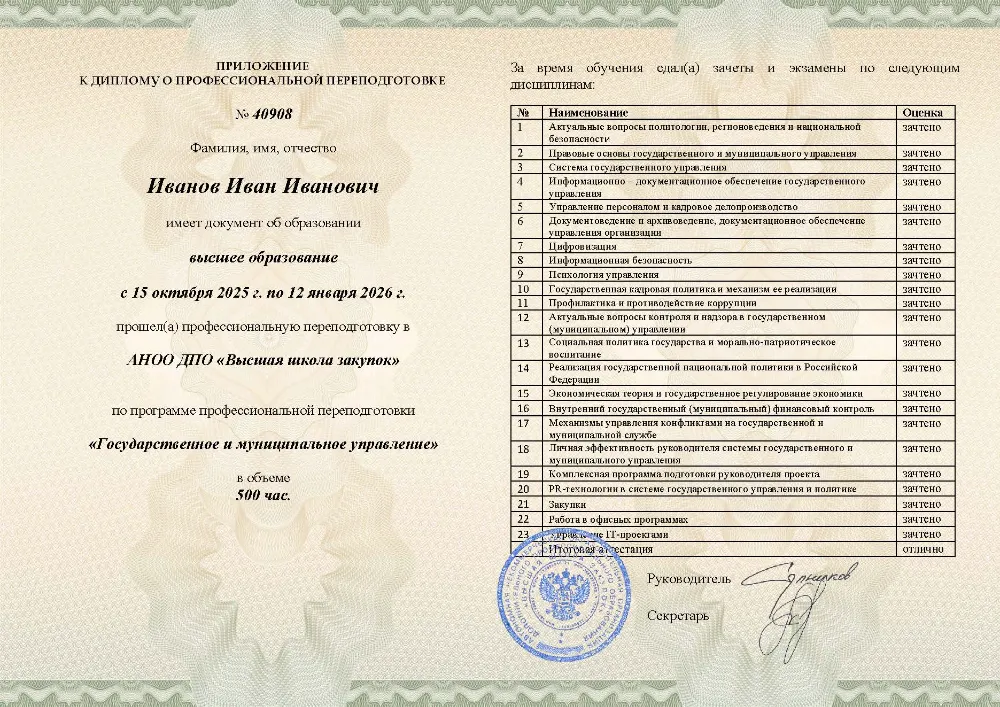 Это полноценная образовательная программа для получения дополнительной квалификации и освоения новой профессии. Для поступления также требуется высшее или среднее профессиональное образование (СПО). Итоговым документом является полноценный диплом о профессиональной переподготовке, который ценится на рынке труда. Программы являются наиболее объемными и начинаются от 250 академических часов, что обеспечивает глубокое погружение в специальность.